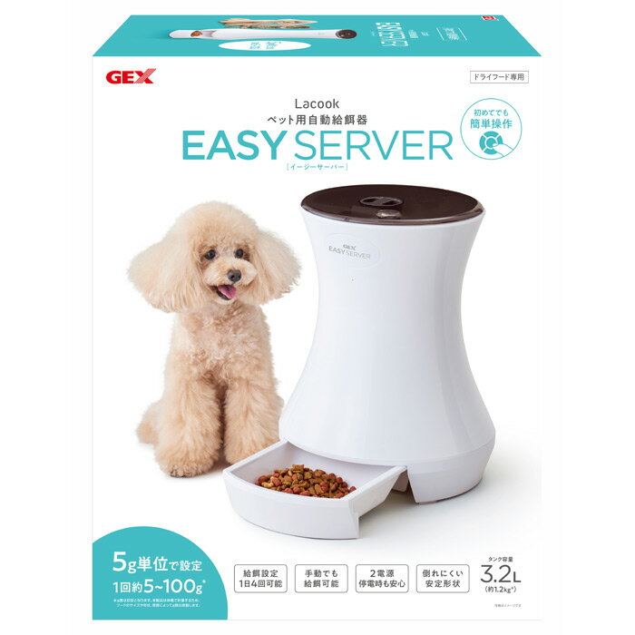 ジェックス Lacook ペット用自動給餌器 EASY SERVER ドライフード専用 ペット用 簡単操作の自動給餌器が誕生! 2電源で、停電時も安心してお使いできます。