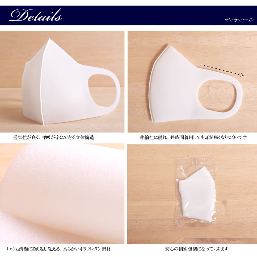 【立体マスク】3枚SET,白,オフホワイト,洗える,大人用,個包装,飛沫,予防,防止,伸縮性,男女兼用,ウレタンマスク,花粉,水洗い,繰り返し,メンズ,レディース,洗えるマスク 在庫あり masuku-03