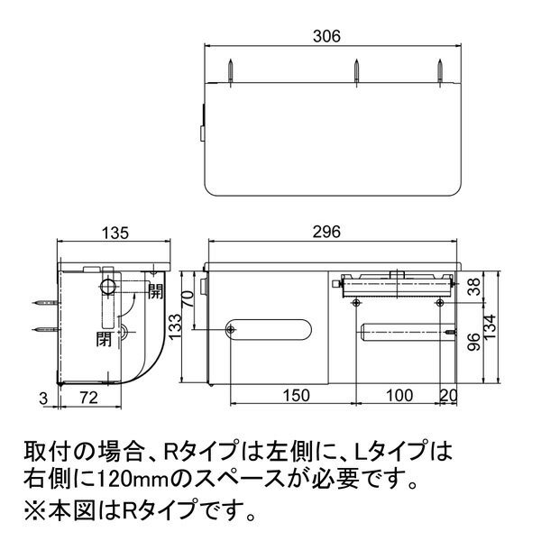 □材質:本体:ステンレス □仕上:本体:ヘアーライン【使用紙サイズ(mm)】※コアレス(芯無し)仕様※紙幅114±2、中心の径30以上、巻き取りの径120以下※Rタイプ※ワンハンドカット仕様※芯ありペーパーは使用できません※細軸芯なしペーパー用は特注にて対応可能※取付の場合、左側に120mmのスペースが必要です●この商品はメーカー取寄せ品です●この商品は複数店舗と在庫を共有しています●不具合ある商品、配送中の破損、商品の瑕疵のみ、商品の返品をお受けしております